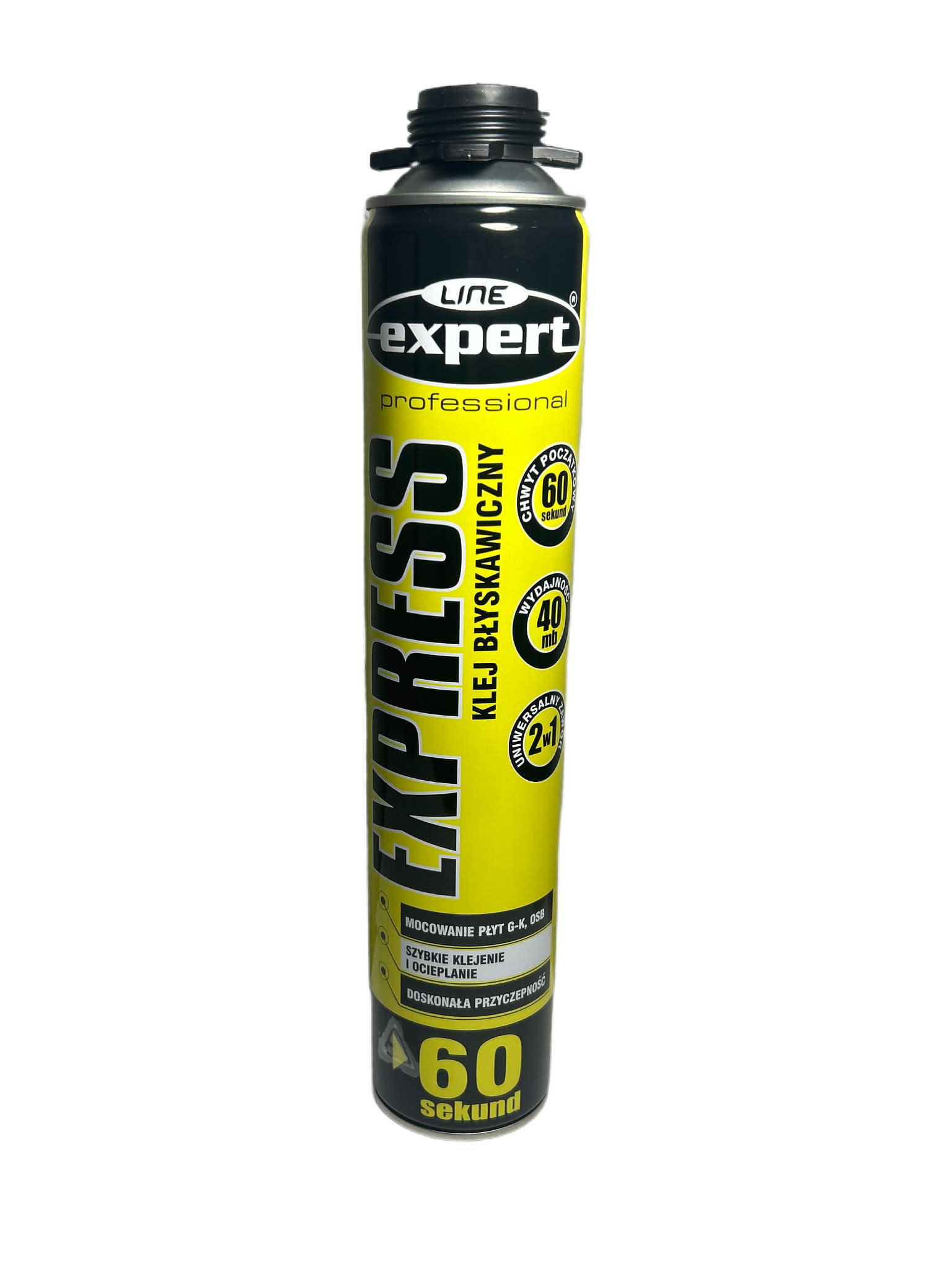 Szybkoschnący jednokomponentowy klej poliuretanowy EXPERT LINE EXPRESS BŁYSKAWICZNY przeznaczony jest do profesjonalnego mocowania materiałów wykończeniowych (m.in. płyt gipsowo-kartonowych i włókno-cementowych, płyt OSB), paneli EPS i XPS przy izolacji termicznej (np. garaży) oraz murowania ścianek działowych.